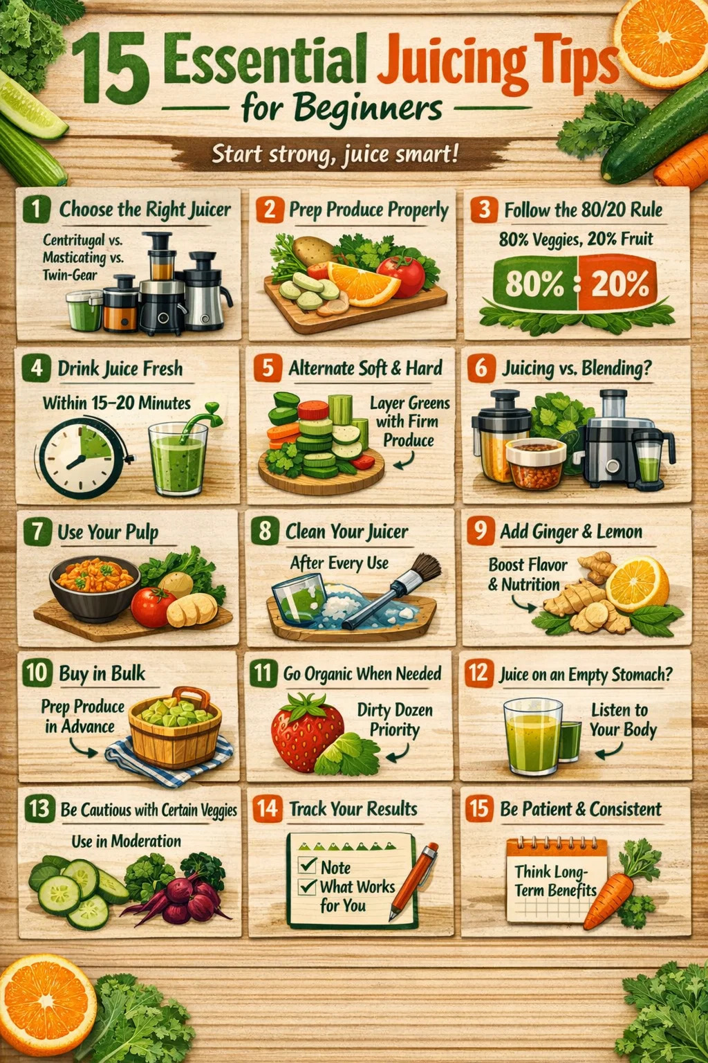 Allt annat – de avancerade teknikerna, näringstillförseln, strategierna för inköp av produkter – bygger på den grunden. De 15 tipsen nedan täcker hela bilden, från att välja rätt juicepress till att maximera vad som hamnar i ditt glas.
