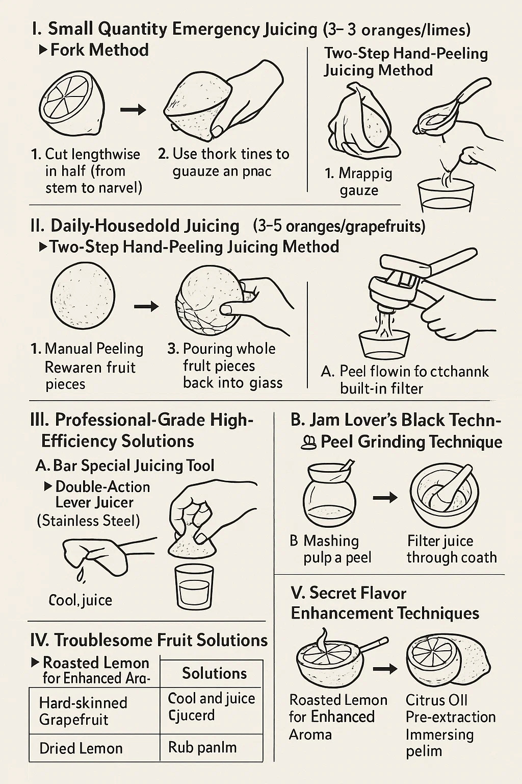 | Vissna citroner | Blötlägg i varmt vatten 3 min → Knåda för att mjukna | Återfuktar torkade juicesäckar → återupplivar flödet |