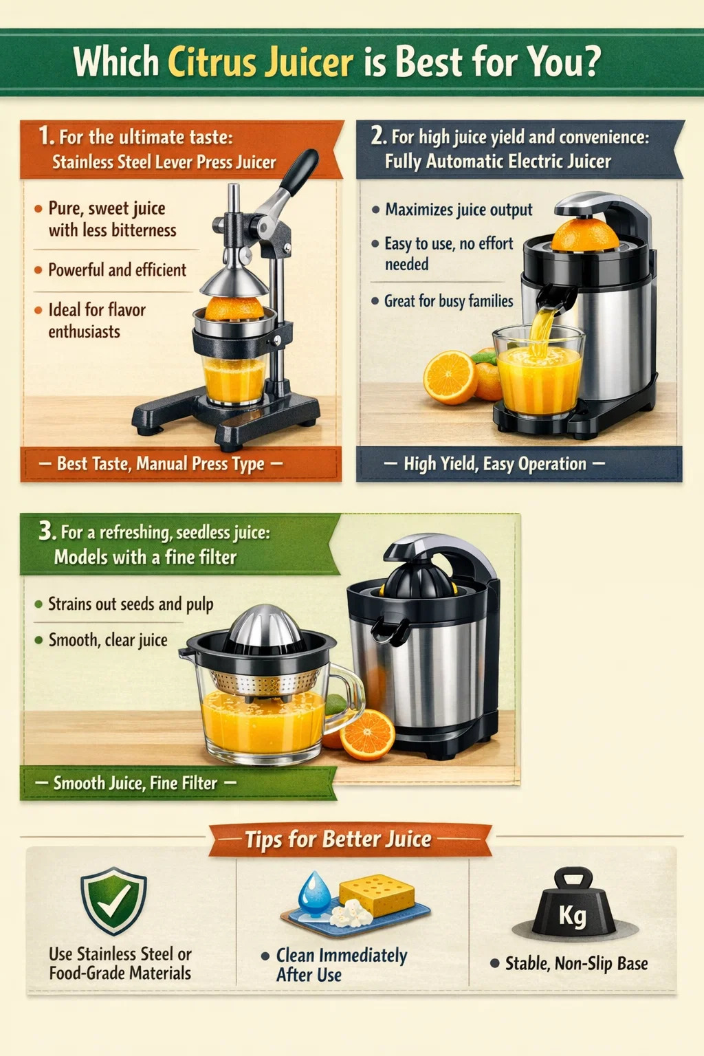 För att extrahera färsk och smakrik juice, välj rätt citrus juicepress är avgörande. Det finns många maskiner på marknaden, men vilken som är "bäst" beror verkligen på dina krav på "läckerhet" och "struktur".